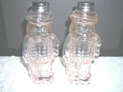 Mr Peanut Salt & Pepper shakers pink depression glass