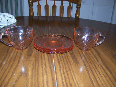Title (ebay affiliate link): Vintage Pink Swirled Glass arcoroc France Cups&Saucers