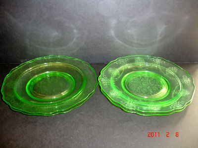 Title (ebay affiliate link): (4) Green Depression Glass "Bow Knot" Dessert Plates