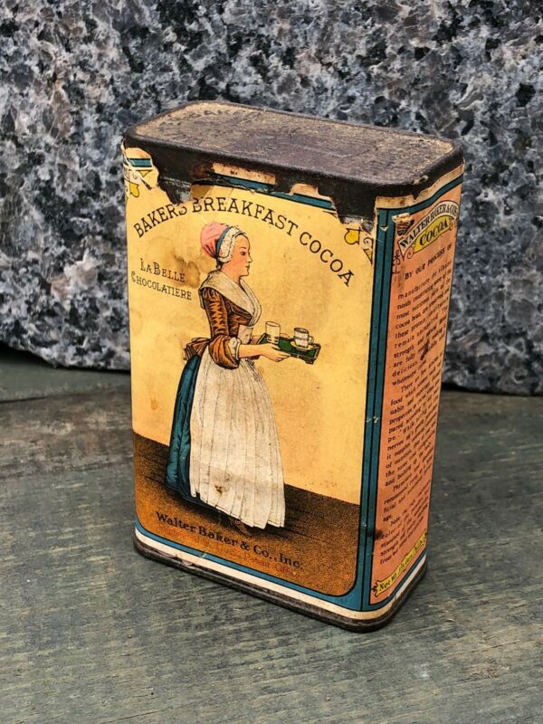 Title (ebay affiliate link): Antique Walter Baker Chocolate Breakfast Cocoa Tin Dorchester MA 3.5 oz Unop