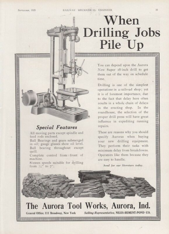 1920 Aurora Tool Works Aurora IL Ad: New Super 28-Inch Drill When Jobs Pile Up