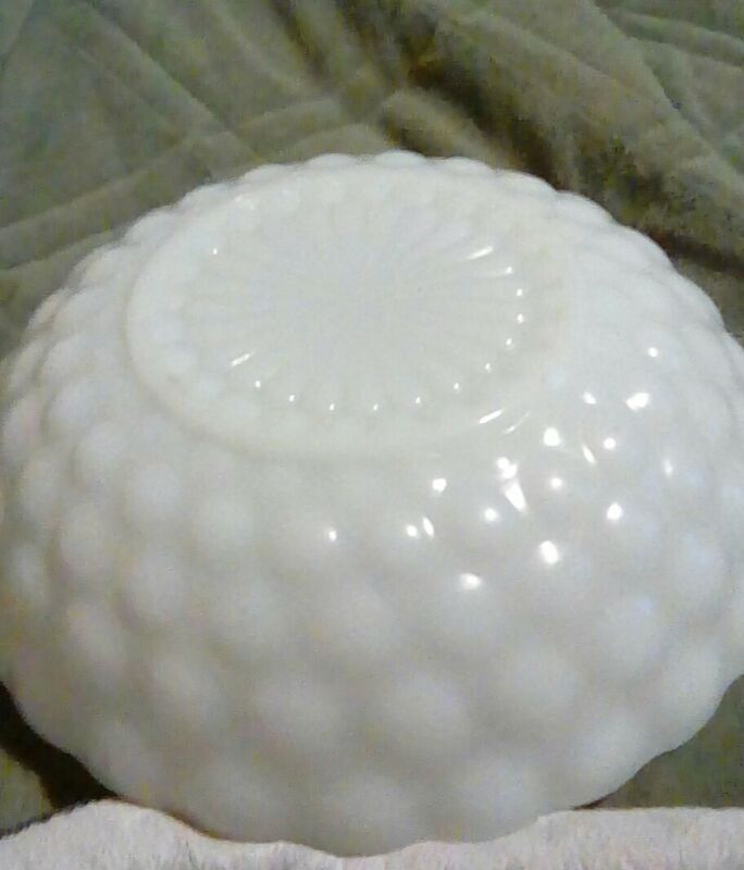 Title (ebay affiliate link): Vintage Anchor Hocking Milk Glass Bowl Bubble Pattern Scalloped 8"