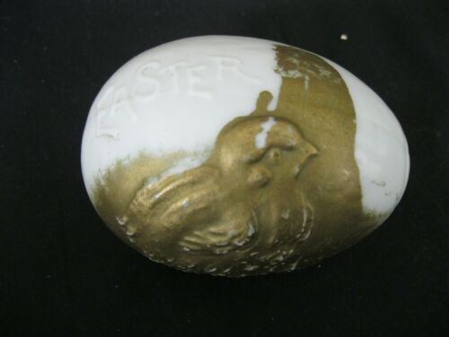 Vintage Large Antique Victorian Hand GOLD Painted Blown Milk Glass Easter Egg 4