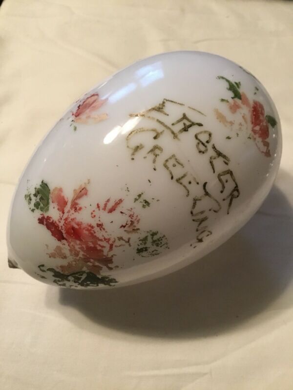 True Antique Large Victorian Hand Blown Milk Glass Easter Egg Easter Greeting