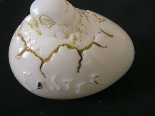 RARE VTG Antique Victorian Hand Painted Milk Glass Easter Cracked Egg Chick 10