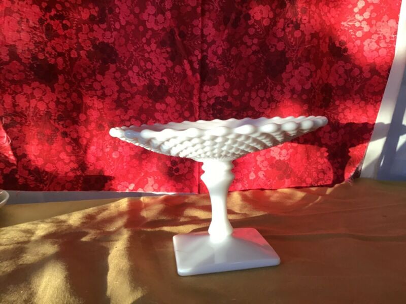 Milk Glass Diamond Cut Stemmed Candy Dish