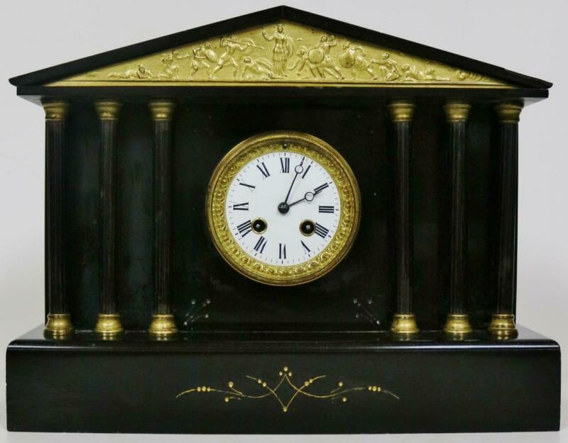 Title (ebay affiliate link): Antique French 8 Day Mantel Clock Bell Striking Architectural Slate Mantle Clock
