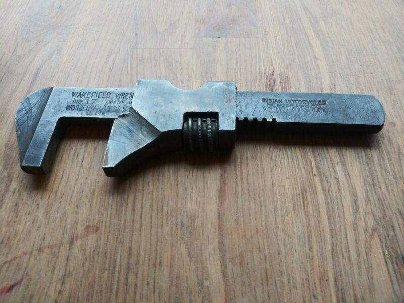Vintage Wakefield No.17 Adjustable Wrench made in USA, Indian motorcycle stamp