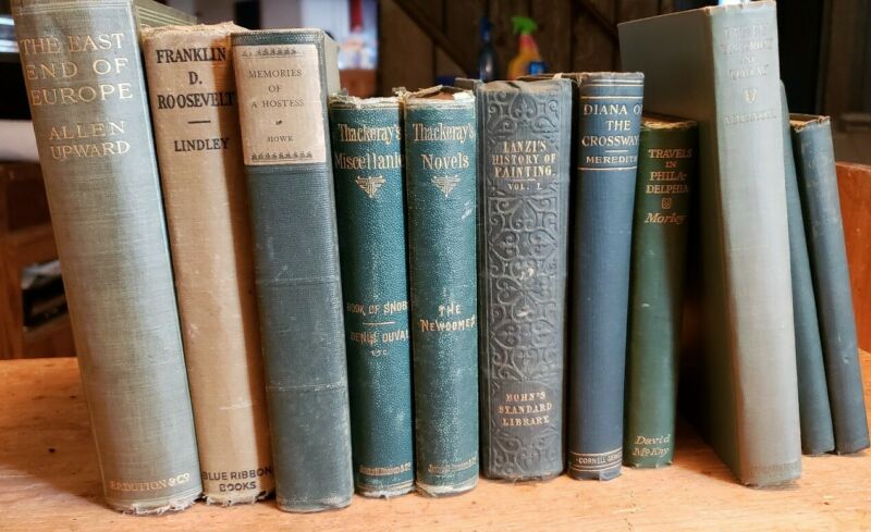Title (ebay affiliate link): A GREEN Decorative Vintage Book Lot (11) Antique Books Display Staging Props