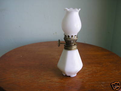 Vintage Miniature Milk Glass Oil Lamp Paneled Sides -NR