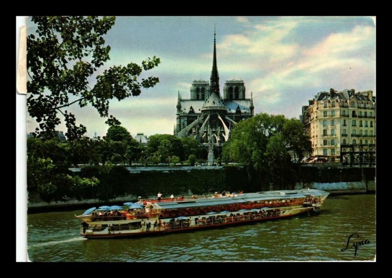 DR JIM STAMPS BOAT SEINE RIVER NOTRE DAME PARIS FRANCE CONTINENTAL POSTCARD