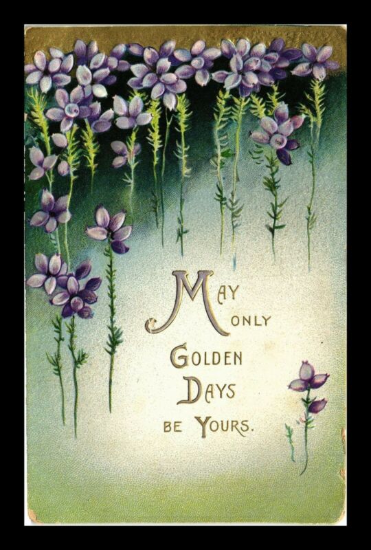 Title (ebay affiliate link): US POSTCARD FRIENDLY GREETING MAY ONLY GOLDEN DAYS BE YOURS EMBOSSED FLOWERS