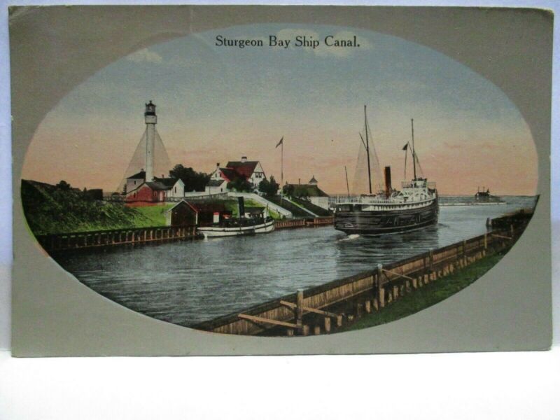 Title (ebay affiliate link): 1913 BASSETT''S DRUG STORE POSTCARD " STURGEON BAY SHIP CANAL " SHIPS, LIGHTHOUSE