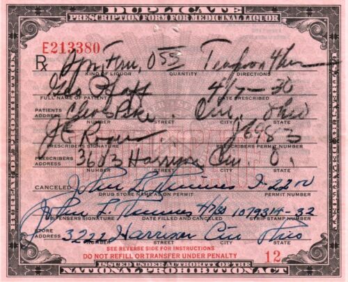 Title (ebay affiliate link): Vintage 1930 Prohibition Whisky Prescription Doctor Cincinnati Ohio OH Bar Pfaff