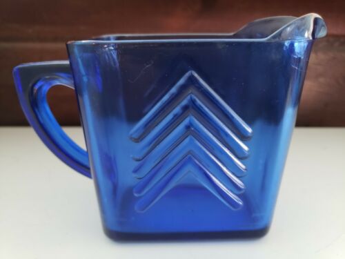 Title (ebay affiliate link): Vintage Hazel Atlas Cobalt Blue Depression Glass Chevron Creamer Pitcher
