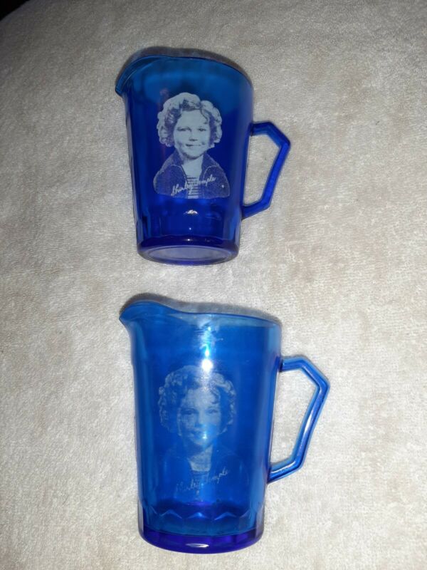 Title (ebay affiliate link): VINTAGE 1940''s SHIRLEY TEMPLE HAZEL-ATLAS-COBALT SET OF 2- MILK PITCHER