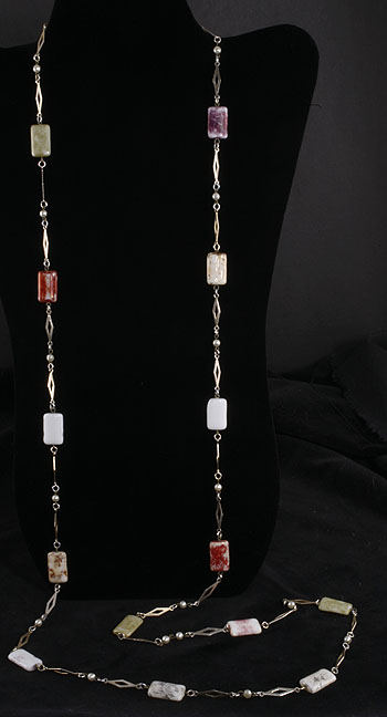 50" LONG VINTAGE SILVER MILK GLASS LINK NECKLACE NR
