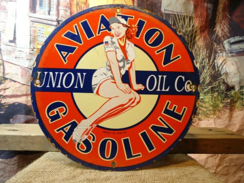 Title (ebay affiliate link): OLD VINTAGE 1959 UNION OIL CO. AVIATION GASOLINE PORCELAIN GAS STATION SIGN