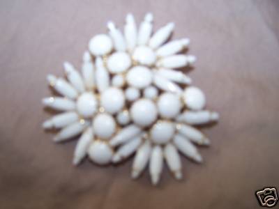 vintage milk glass white bead brooch pin starburst