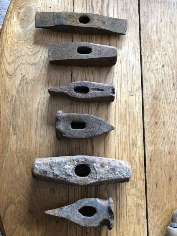 Title (ebay affiliate link): 6 VINTAGE HAND FORGED CUT BLACKSMITH HAMMER HEAD CHISEL BALL PEEN