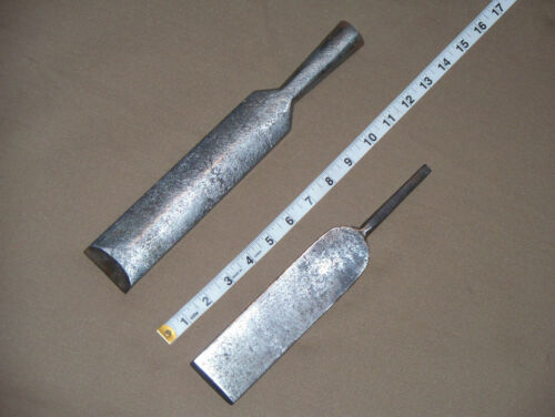 #59 Vintage Lot 2 pc Large Slick Wood Socket Tang Chisel Tool EVERKEEN