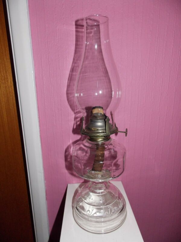VERY NICE CLEAR GLASS OIL LAMP WORKING ORDER