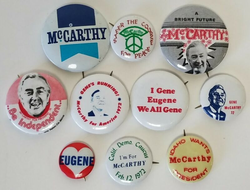 Title (ebay affiliate link): (10) 1972 Eugene McCarthy Presidential Campaign Pinback Buttons