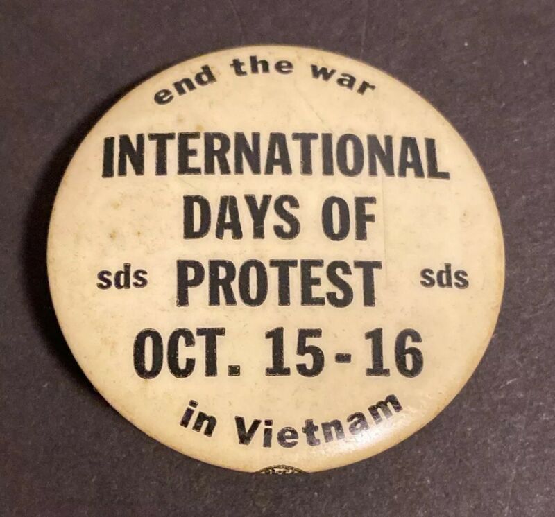 Title (ebay affiliate link): 1965 VIETNAM INTERNATIONAL PROTEST PEACE Pinback Button POLITICAL Pin Badge