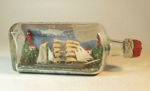 Title (ebay affiliate link): NICE ANTIQUE MODEL SHIP IN A BOTTLE WITH LIGHTHOUSES AND MACRAME END