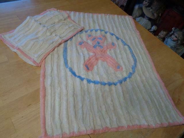 Vintage Chenille Doll Bedspread/Blanket/Coverlet & Pillow Shame~Teddy Bear~