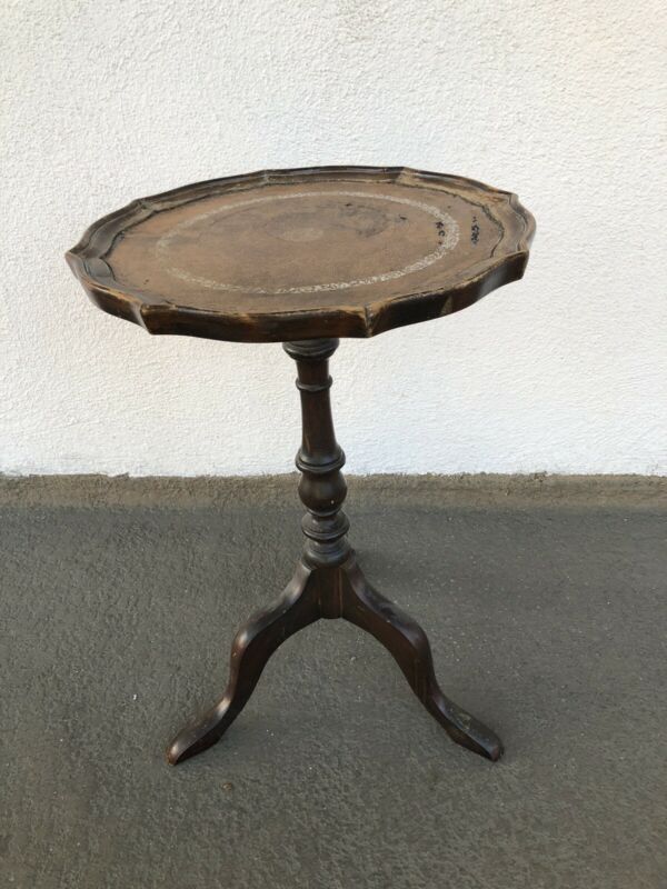 Title (ebay affiliate link): Vintage Carved Wooden Italian Florentine Side Table Tea Tray 3-Footed Leathered
