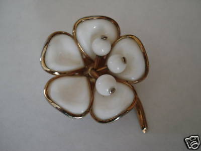VINTAGE TRIFARI POURED MILK GLASS FLOWER PIN
