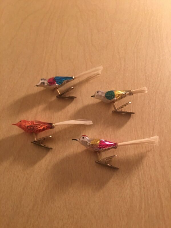 Title (ebay affiliate link): Lot of 4 Vintage Clip On Spring BLOWN GLASS Multicolor BIRDS CHRISTMAS ORNAMENTS