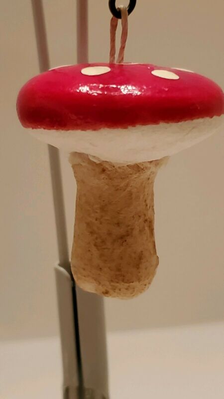 Title (ebay affiliate link): Small OLD Antique Vintage 1900s German Spun Cotton Mushroom Ornament All Orig.