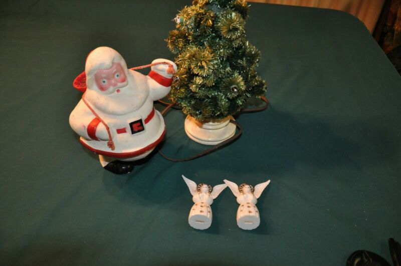 Vintage Paper Machie Santa with Vintage Tree