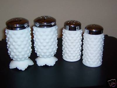 2 FENTON MILK GLASS HOBNAIL SALT AND PEPPERS