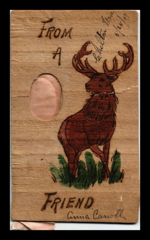 DR JIM STAMPS US WOOD POSTCARD BUCK FROM A FRIEND POSTCARD PINK RIBBON