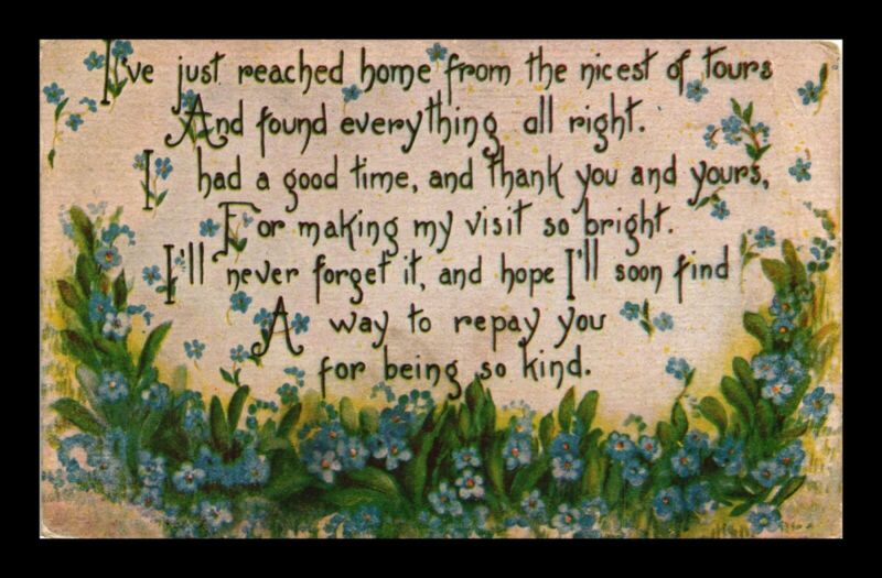 Title (ebay affiliate link): DR JIM STAMPS US THANK YOU GREETING BLUE FLOWERS POSTCARD 1910