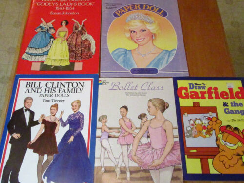 5 Vintage Books Fashion Paper Dolls Godeys Ladys The Clinton''s Princess Diana.