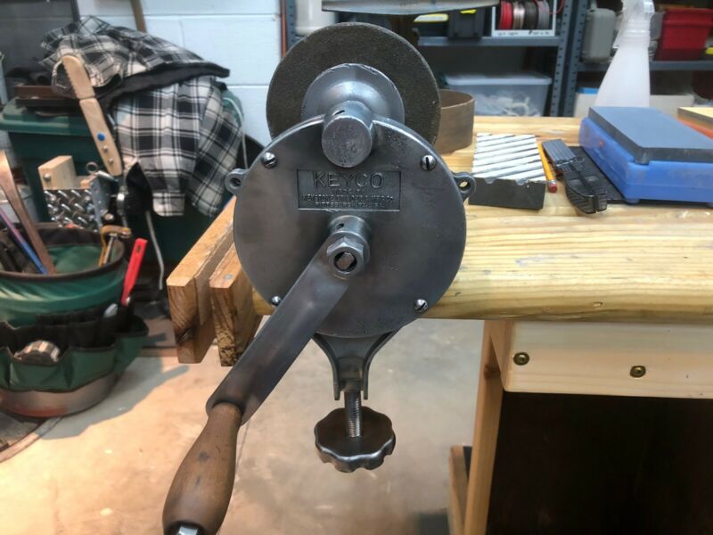 Title (ebay affiliate link): Antique Vintage Cast Iron Hand Crank Bench Mount Grinder Knife Sharpener Tool