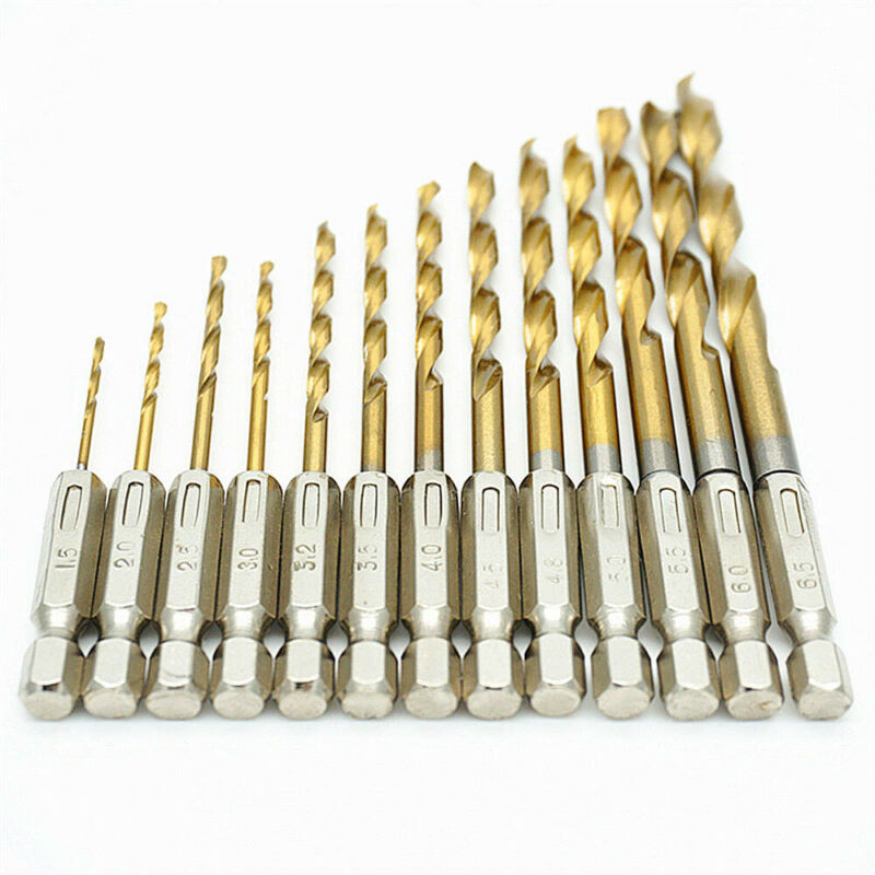 13pcs Titanium Coated HSS Drill Set Twist Drill Hex Shank Drill 1.5-6.5mm #fa13