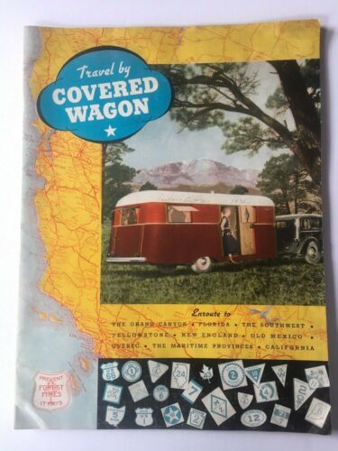 Title (ebay affiliate link): VTG 1936 Covered Wagon Camper Travel Trailer auto camp Brochure Spec Sheet
