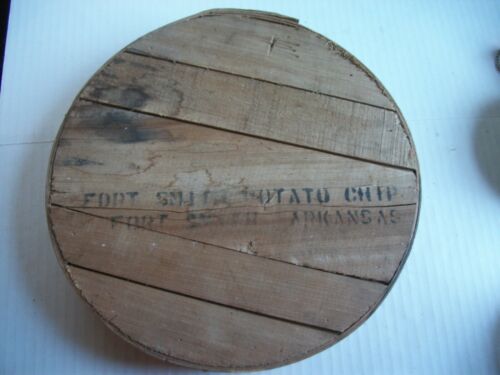 Title (ebay affiliate link): VINTAGE FORT SMITH ARKANSAS POTATO CHIPS WOOD WOODEN LID ONLY