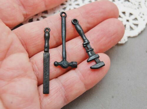 Title (ebay affiliate link): Miniature Tool Lot 3 File Hammer Pipe Wrench Doll House Charm Fob Vintage Metal