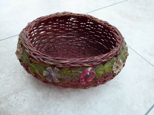 Title (ebay affiliate link): Lovely Vintage Deep Pink & Gold Sewing or Work Basket Barbola Flower Detail
