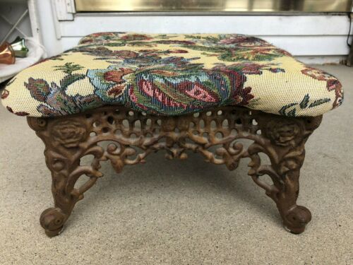 Title (ebay affiliate link): Vintage Victorian Cast Iron Foot Stool Ornate Metal Floral French Designed 7"H