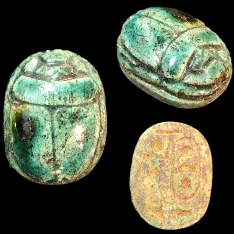 Title (ebay affiliate link): BEAUTIFUL ANCIENT EGYPTIAN BLUE GLAZED SCARAB 300 BC (4)