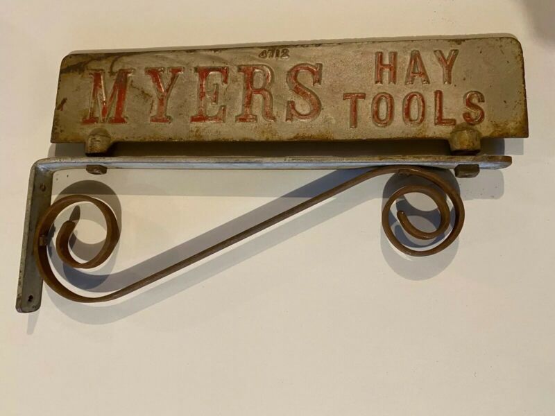Title (ebay affiliate link): Rare Myers Hay Tools Double Sided Sign With Mounting Bracket - Trolley