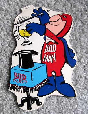 Title (ebay affiliate link): Bud Man Out of Hat Sticker 1970's Magician Budweiser