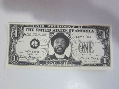 Title (ebay affiliate link): 1968 DICK GREGORY DOLLAR BILL * FOR PRESIDENT * CAMPAIGN ITEM * WRITE IN